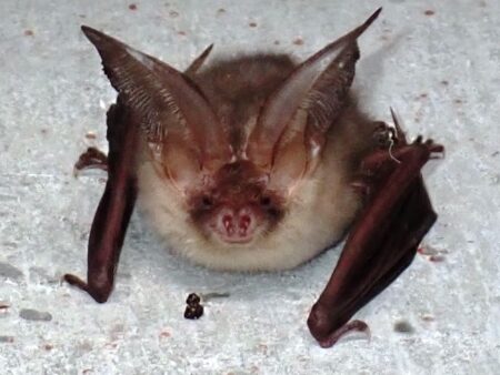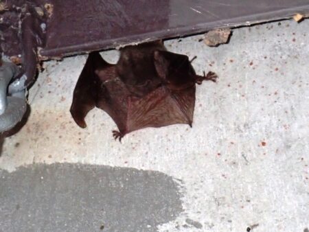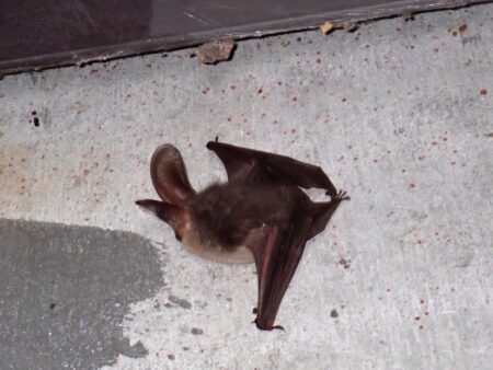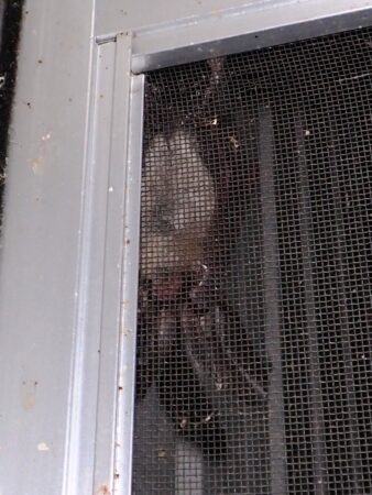 過去にも、管理棟の2階にとまっていたことがありましたが、昼間は耳を畳んでおり、夕方になると耳を伸ばしていました。