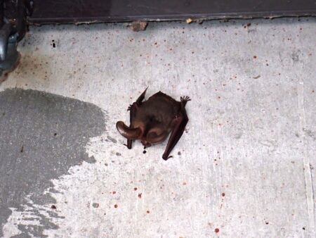昼頃、標茶区管理棟の前を歩いていると、何かがひらひらと舞うように飛んでおり、よく見るとコウモリでした。